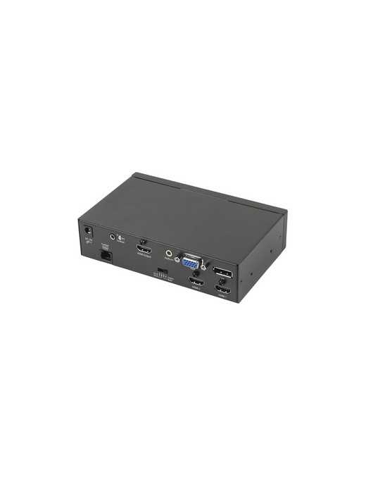 The converter switch ensures hassle-free operation, with two different auto-switching modes: auto-detect switching, which detects and selects a newly connected device, or priority selection, which lets you choose which port should be activated by default for automatic switching. The converter switch is perfect for digital signage applications where an automatic switch can replace a failed source with a secondary input to avoid embarrassing video outages.