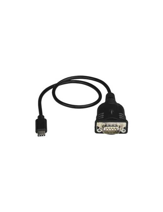 StarTech.com USB C to Serial Adapter Cable with COM Port Retention, 16" (40cm) USB Type-C to RS232 DB9 Converter Cable, Windows/Mac/Linux - 16in USB-C to Serial adapter converter cable RS232 DB9 - 921.6 Kbps baud - 512 byte FIFO - Data bits of 5/6/7/8 w/stop bits 1/1.5/2 - COM port config retention - Industrial/commercial USB Type-C to RS-232 cable - Auto install - Windows/macOS/Linux