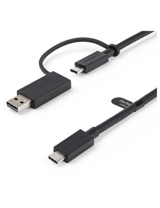 StarTech.com 3ft/1m USB-C Cable with USB-A Adapter Dongle, USB-C to C (10Gbps/PD), USB-A to C (5Gbps), 2-in-1 USB C Cable for Hybrid Dock - 3.3ft USB C cable with USB A adapter dongle - USB C to C cable (10Gbps/100W PD 3.0) and attached USB C to A adapter (5Gbps/No PD); Connect laptop to USB Type-C hybrid docking station/hub; For StarTech.com DK30C2DPEP/DK30C2DPPD; MacBook/Lenovo/Dell