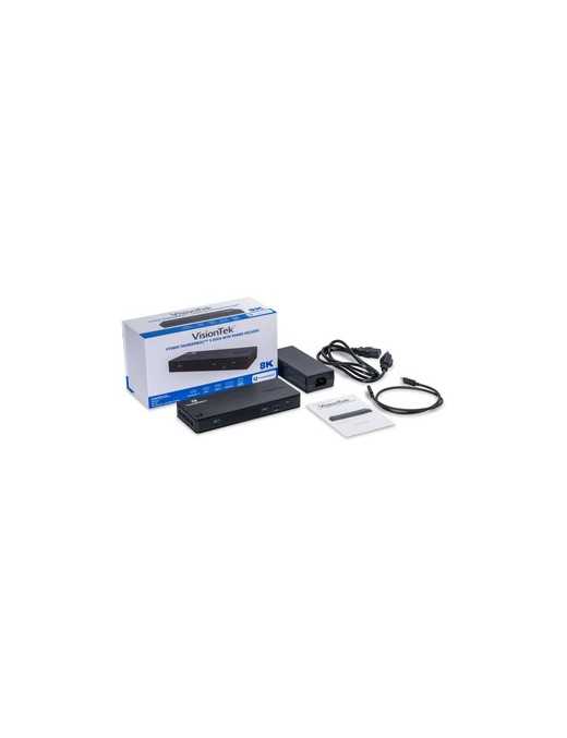 Increase productivity with our plug and play, power delivery docking station, the VisionTek VT4800 Thunderbolt™ 3 USB-C Docking Station with Power Delivery for Windows™ and Mac™ laptop systems. With a single USB-C or TB3 connection, you can connect up to two external monitors, transfer files and data at up to 10Gbps, play audio, charge mobile devices and your system.