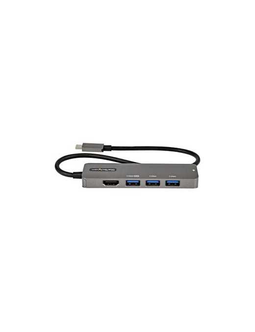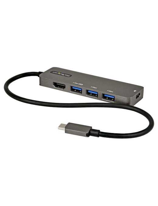 StarTech.com USB C Multiport Adapter, USB-C to HDMI 4K 60Hz (HDR10), 100W PD Pass-Through, 4xUSB 3.0, USB Type-C Mini Dock, 12" Long Cable - for Notebook/Tablet/Workstation/Monitor - 100 W - USB Type C - 1 Displays Supported - 4K - 3840 x 2160 - 3 x USB Type-A Ports - USB Type-A - 1 x USB Type-C Ports - USB Type-C - Network (RJ-45) - 1 x HDMI Ports - HDMI - Thunderbolt - Wired - Windows 8, Windows 7, Windows 8.1, Windows 10, Windows 11, Mac OS X 10.9 Mavericks, Chrome OS