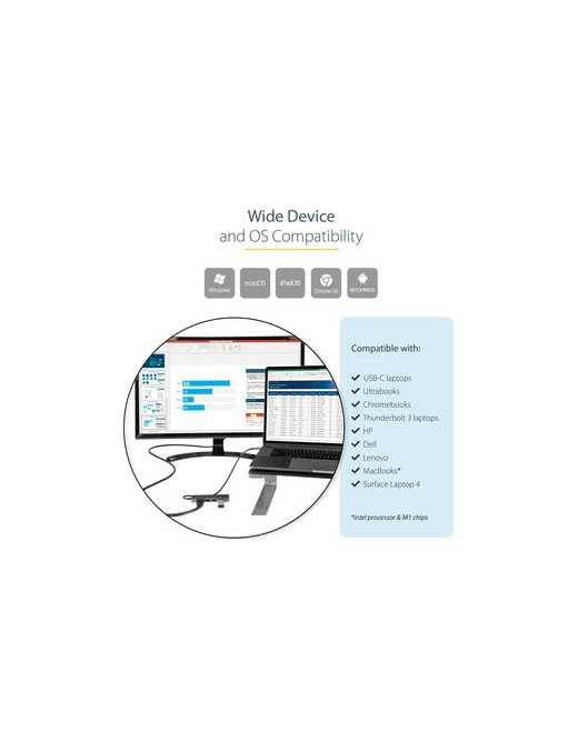 - WIDE COMPATIBILITY: Compatible with USB-C laptops, ultrabooks & Chromebooks, plus Thunderbolt 3 laptops from HP, Dell, Lenovo, MacBooks (Intel processor & M1 chip), and Surface Laptop 4; USBC mini dock works w/ Windows, macOS, iPadOS, Android & Chrome OS