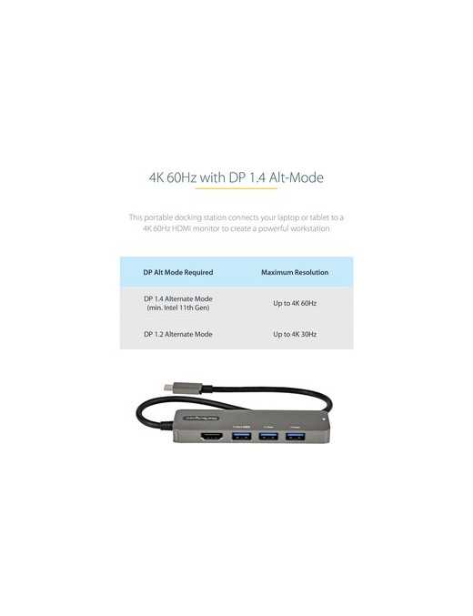 - 4K 60HZ WITH DP 1.4 ALT-MODE: Supports 4K 60Hz on host devices that support DP 1.4 Alt-Mode (min. Intel 11th Gen); on host devices that support DP 1.2 Alt-Mode, maximum video output resolution is 4K 30Hz; works w/ ultra-wide monitors up to 3440x1440@60Hz