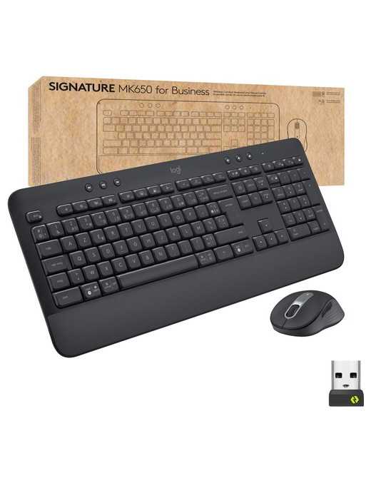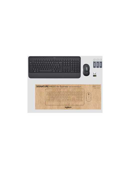 Logitech Signature MK650 Combo for Business Wireless Mouse and Keyboard Combo - USB Plunger Wireless Bluetooth/RF Keyboard - 118 Key - French - Graphite - USB Wireless Bluetooth/RF Mouse - 4000 dpi - Scroll Wheel - Graphite - AA - Compatible with PC, Mac