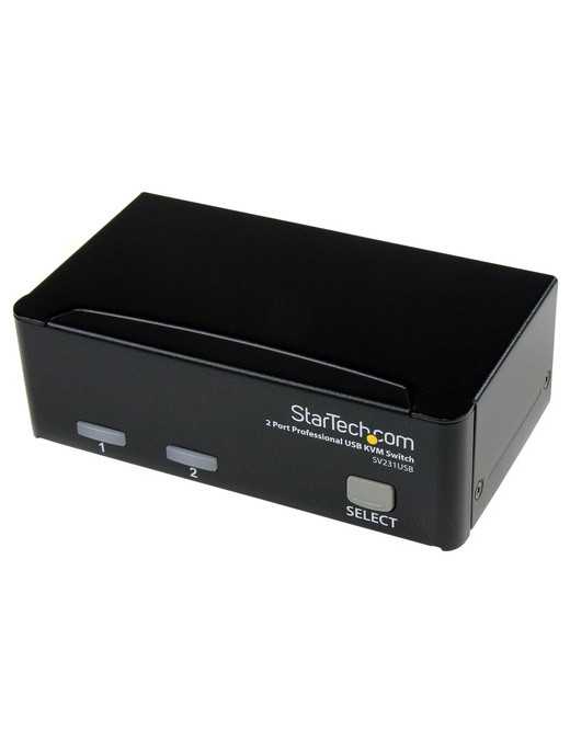 The SV231SUB 2 Port Professional USB KVM Switch Kit with Cables offers simple control of two Mac or PC computers from a single monitor/display and USB peripheral set (keyboard, mouse).