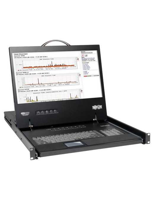 Tripp Lite NetController 19" 16-Port VGA Console KVM Switch - Steel Housing - 16 Computer(s) - 19" Active Matrix TFT LCD - 16 x HD-15 Keyboard/Mouse/Video Tripp Lite's B040-016-19 KVM Switch gives you a rack-mountable keyboard, LCD and touchpad in a single console that occupies only 1U of rack space. Easy to install and use, it's the cost-effective solution for controlling up to 16 directly connected computers/servers.The B040-016-19 has a built-in 19" LCD screen supports video resolutions up to 1366 x 768. You can switch easily between the 16 ports using on-console push buttons, an on-screen display (OSD) or keyboard hot key commands. Password protection prohibits unauthorized users from accessing the connected computers. With this KVM switch, you can increase the number of connected computers up to 256 by daisy-chaining up to 15 B042-Series KVM switches. Uses Tripp Lite P780-series combo cable kits that support both PS/2 and USB connections without the need to purchase additional cables or adapters. An extra HD15 port allows an additional VGA monitor or an external console to be connected. Add a Tripp Lite B051-000 IP Remote Access Unit to connect from anywhere in the world. An additional USB port lets you connect an external mouse or keyboard. When not in use, the B040-016-19 stores neatly in a rack drawer and pulls out when needed. This KVM console is compatible with all major operating systems. Rugged steel housing stands up to frequent use.