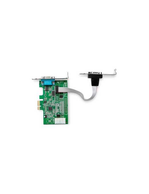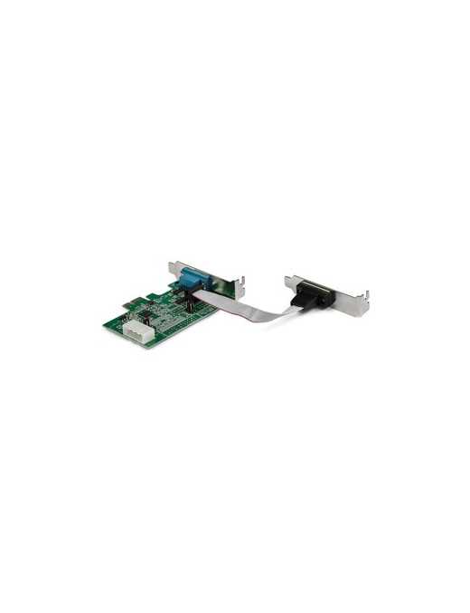 StarTech.com 2-port PCI Express RS232 Serial Adapter Card - PCIe Serial DB9 Controller Card 16950 UART - Low Profile - Windows and Linux - 2-port PCI Express RS232 serial controller card w/16950 UART/ASIX AX99100 - Bi-directional speeds 921.6Kbps/port | 256 byte FIFO | 9th data bit - Pin 9 pwr out 5v/12v/none w/up to 2A total - Expansion card w/low profile bracket (Std incl) - Win/Linux