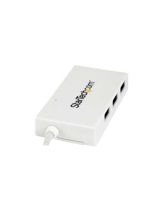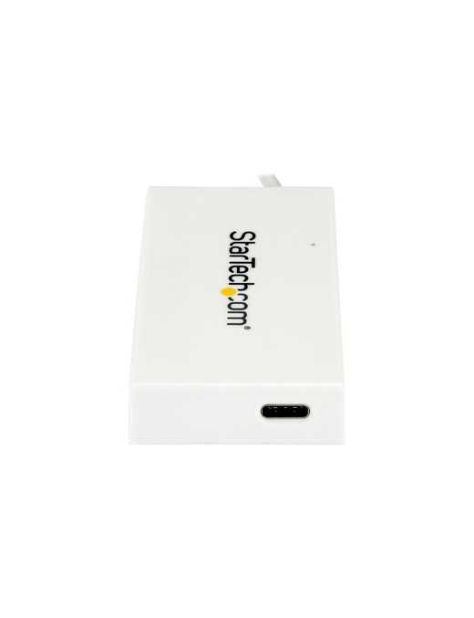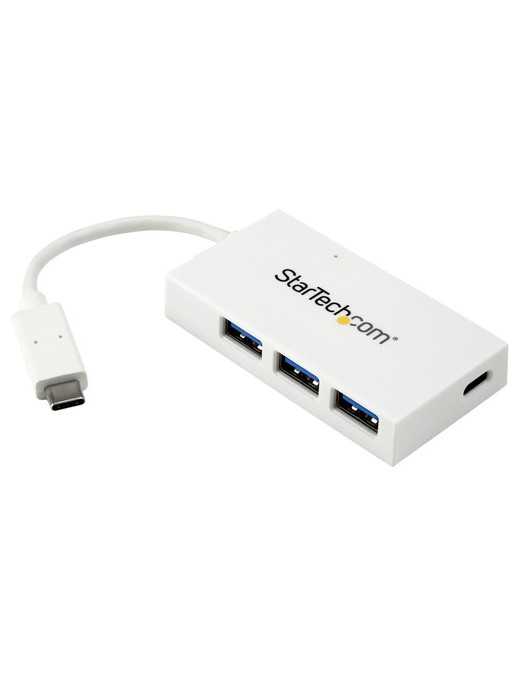StarTech.com 4 Port USB C Hub with 1x USB-C & 3x USB-A (SuperSpeed 5Gbps) - USB Bus Powered - Portable/Laptop USB 3.0 Type-C Hub - White - Portable 4 Port USB-C hub - USB Type-C laptop to 3 USB-A/1 USB-C - SuperSpeed 5Gbps (USB 3.0/USB 3.1/3.2 Gen 1) - USB bus powered draw up to 15W (3A/5V) total shared - OS independent - White USB C to USB A adapter hub - Works w/ Thunderbolt 3/USB 2.0