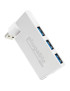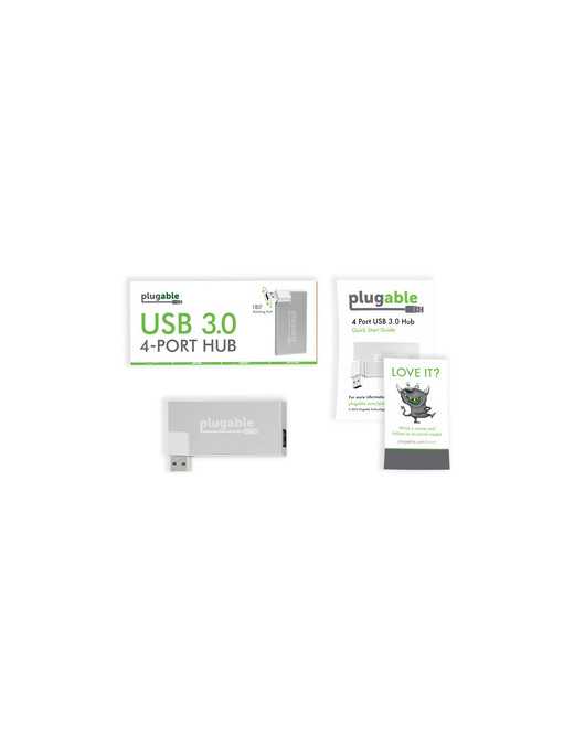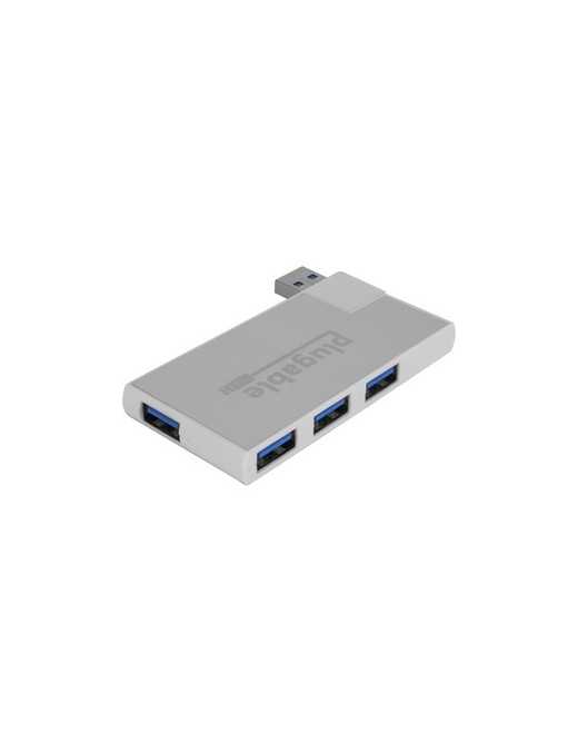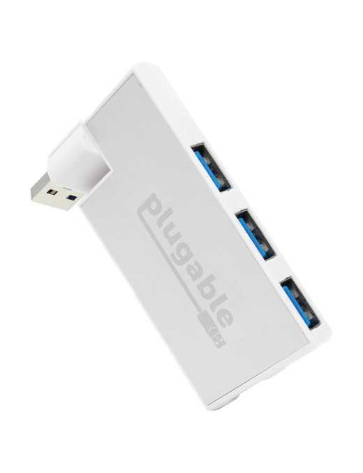 The Plugable Bus-Powered 4-Port Rotating USB 3.0 Hub (USB3-HUB4R) is a portable USB 3.0 travel hub that enables connecting four low-power USB 3.0 devices on a single USB 3.0 port. The hub features a unique 180 degree rotating USB connector to allow convenient placement on a variety of host computers like laptops, tablets, or 2-in-1s. As a bus-powered hub, it's great for USB devices with low power draw like wired keyboards and mice, flash drives, and card readers.