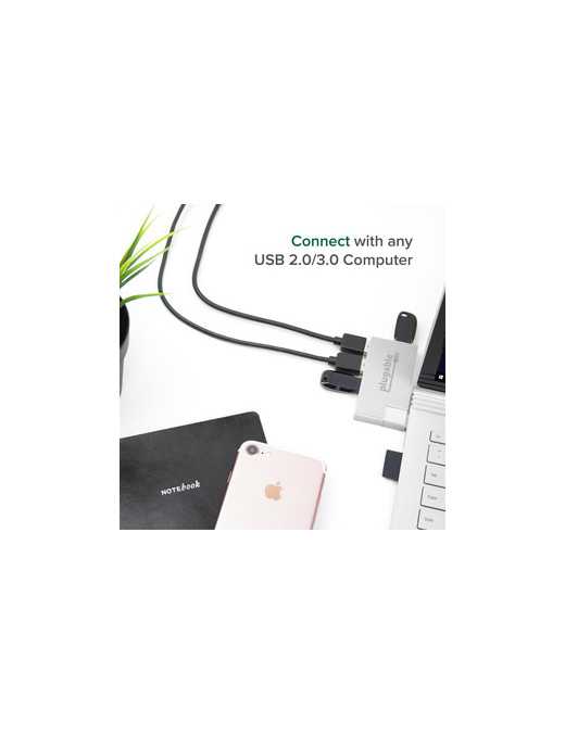Plugable USB Hub, Rotating 4 Port USB 3.0 Hub, Powered USB Hub (Compatible with Windows, macOS & Linux, USB 2.0 Backwards Compatible) - USB 3.0 Type A - External - 4 USB Port(s) - 4 USB 3.0 Port(s) - PC, Mac, Linux