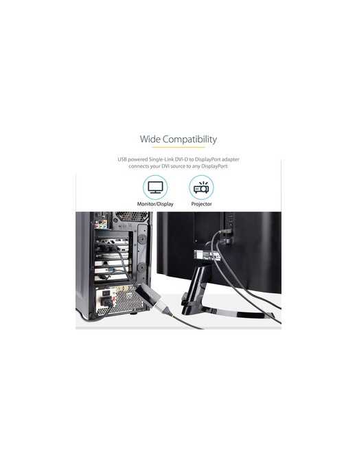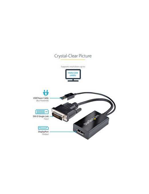 With support for display resolutions up to 1920x1200 or 1080p, the DVI to DisplayPort adapter lets you take full advantage of the single-link DVI-D capabilities that are built into your computer's graphics card.