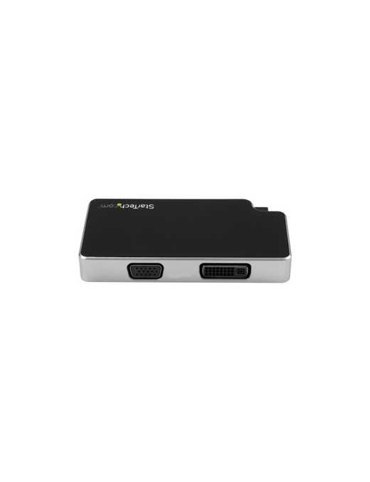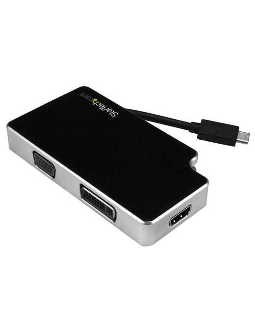 Instead of carrying three separate video adapters in your laptop bag, this 3-in-1 adapter gives you all the video outputs you'll need. With VGA, DVI and HDMI outputs, this adapter lets you connect from your laptop's USB Type-C port to almost any boardroom or classroom display, without the inconvenience of carrying a separate adapter for each display type.