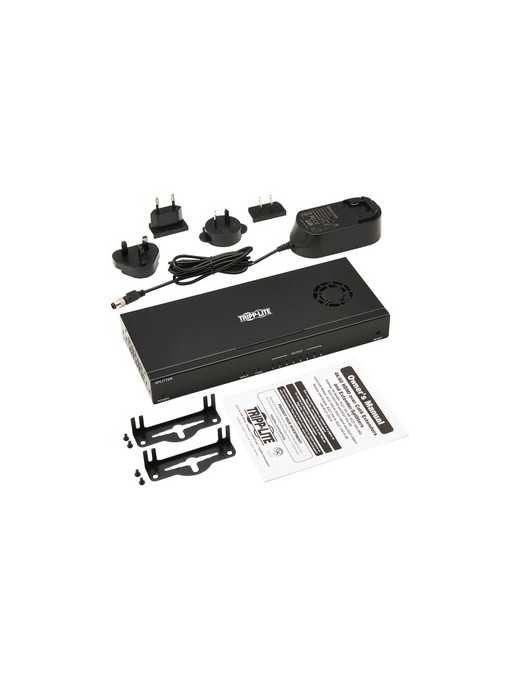 This eight-port transmitter/splitter is recommended for video presentations in conference rooms, schools, trade shows, meeting facilities, houses of worship, retail settings and other digital signage applications where the source and display are farther apart than conventional A/V cables allow. The B127-008-H extends 4K video and stereo audio signals from an HDMI source device to eight HDMI displays up to 125 feet (38.1 meters) away via user-supplied Cat6 cabling.