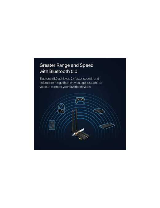 Wi-Fi 6 comes with 1024-QAM and 160 MHz bandwidth, for powerful, continuous WiFi. Bandwidth-intensive applications like VR demand high speeds, which Wi-Fi 6 delivers-3× faster than Wi-Fi 5.§ Just insert Archer TX50E into your PC for fully immersive VR experiences.