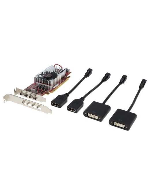 The RX 550 4M fits a full height or small form factor system an featuring 4 mini DisplayPort ports in a single slot.