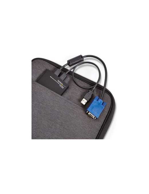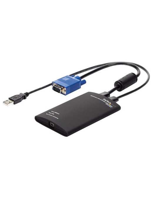 With portability for the mobile administrator or repair technician in mind, this USB-powered adapter features a small-footprint design that requires no additional accessories to connect to most servers, and requires no server-side software installation. Plus, the pocket-sized adapter draws its power from the server-side USB connections, allowing the laptop/netbook to last longer without consuming battery power.