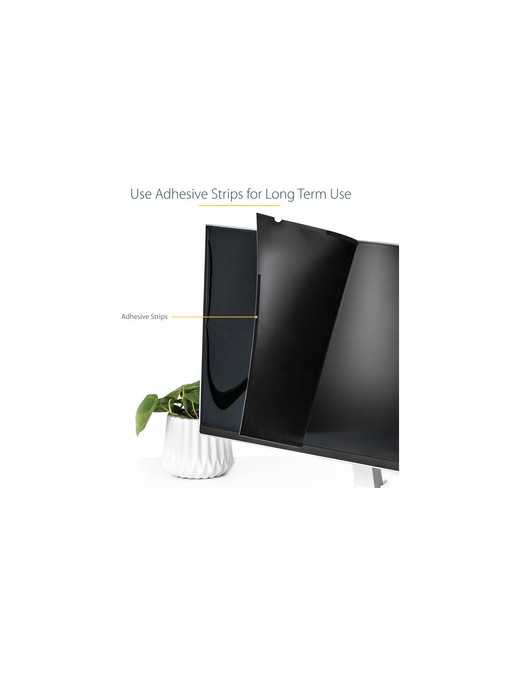 • EASY APPLICATION: Using adhesive strips that won't leave permanent residue, apply the removable privacy filter cover to monitor bezel w/ the side mount tabs or directly to the screen for long term use