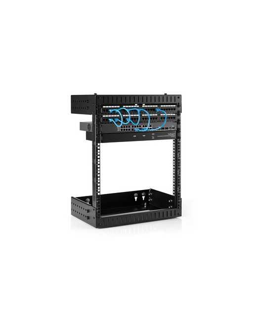 This open-framewall-mountserver rack provides 12Uof storage, helping you to save space and stay organized. The equipment rack features an adjustable depth and can hold a total of up to 198 lb. (90 kg).