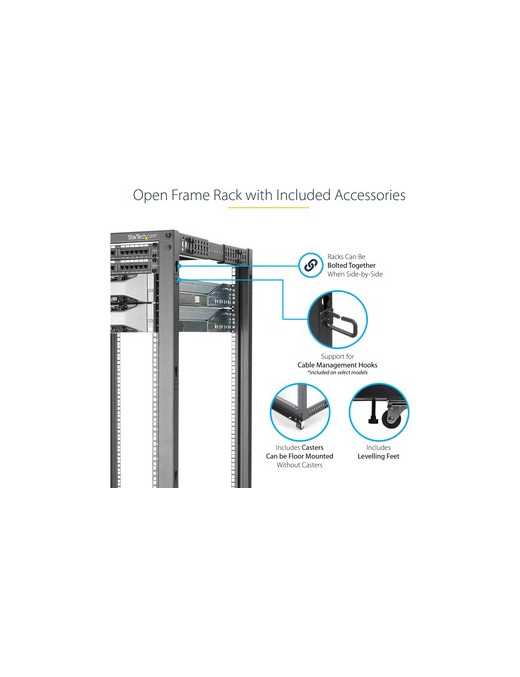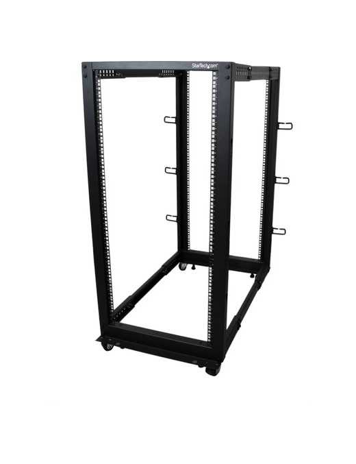 StarTech.com 25U Adjustable Depth Open Frame 4 Post Server Rack w/ Casters / Levelers and Cable Management Hooks - Store your se
