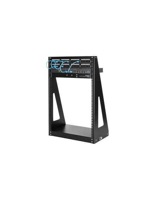 This 2-post rack stands on your floor or desktop to provide 16U of storage space for EIA-310-D compliant 19" rack-mount devices, such as telecommunication and A/V equipment. The rack creates a robust storage solution, with support for a total load capacity of 160 kg (350 lb.).