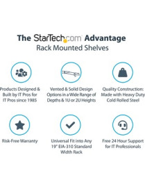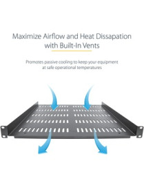 StarTech.com 1U Adjustable Depth Vented Sliding Rack Mount Shelf - 50lbs / 23kg - 2U Rack Height x 19" (482.60 mm) Rack Width - Black - Cold-rolled Steel (CRS) - 22.68 kg Maximum Weight Capacity - TAA Compliant Increase peripheral and equipment accessibility with this vented sliding cabinet shelf. The UNISLDSHF19 19in Vented Adjustable Mounting Depth Sliding Server Rack Cabinet Shelf offers a simple way to install non rack mountable equipment into a server cabinet or open server rack. This TAA compliant product adheres to the requirements of the US Federal Trade Agreements Act (TAA), allowing government GSA Schedule purchases.
