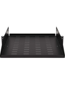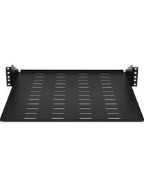 Offering a weight capacity of up to 50 lbs (22.7 kg), the sliding rack shelf features a ventilated, cold-rolled steel shelf on two locking adjustable rails which allow the shelf to be installed into cabinets or racks with mounting depths from 20in (510mm) to 30in (744mm). The locking feature locks the shelf 3/4 of the way out, preventing the shelf from accidentally falling out of the rack or sliding back in before maintenance is complete.