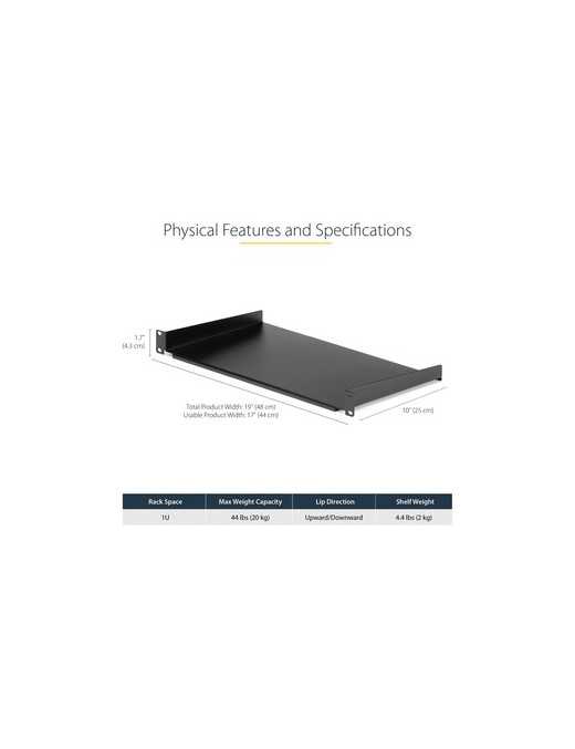 The CABSHELF1U10is backed by a StarTech.com lifetime warranty and free lifetime technical support.