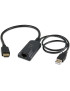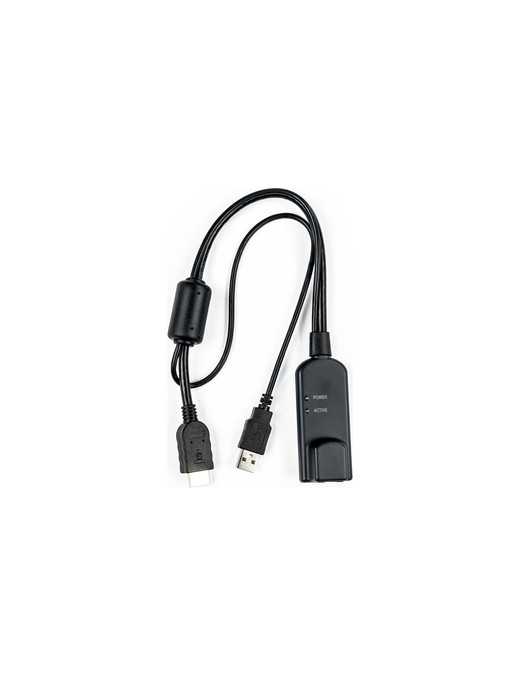 The Vertiv Avocent MergePoint Unity IQ Server Interface is an access cable designed for use with Vertiv Avocent MergePoint Unity KVM switches. It is designed for DisplayPort video, USB Keyboard/mouse, supporting virtual media, CAC, and USB 2.0. It has an RJ-45 female port, a USB 2.0 port, and a 19-pin HDMI Type A port.